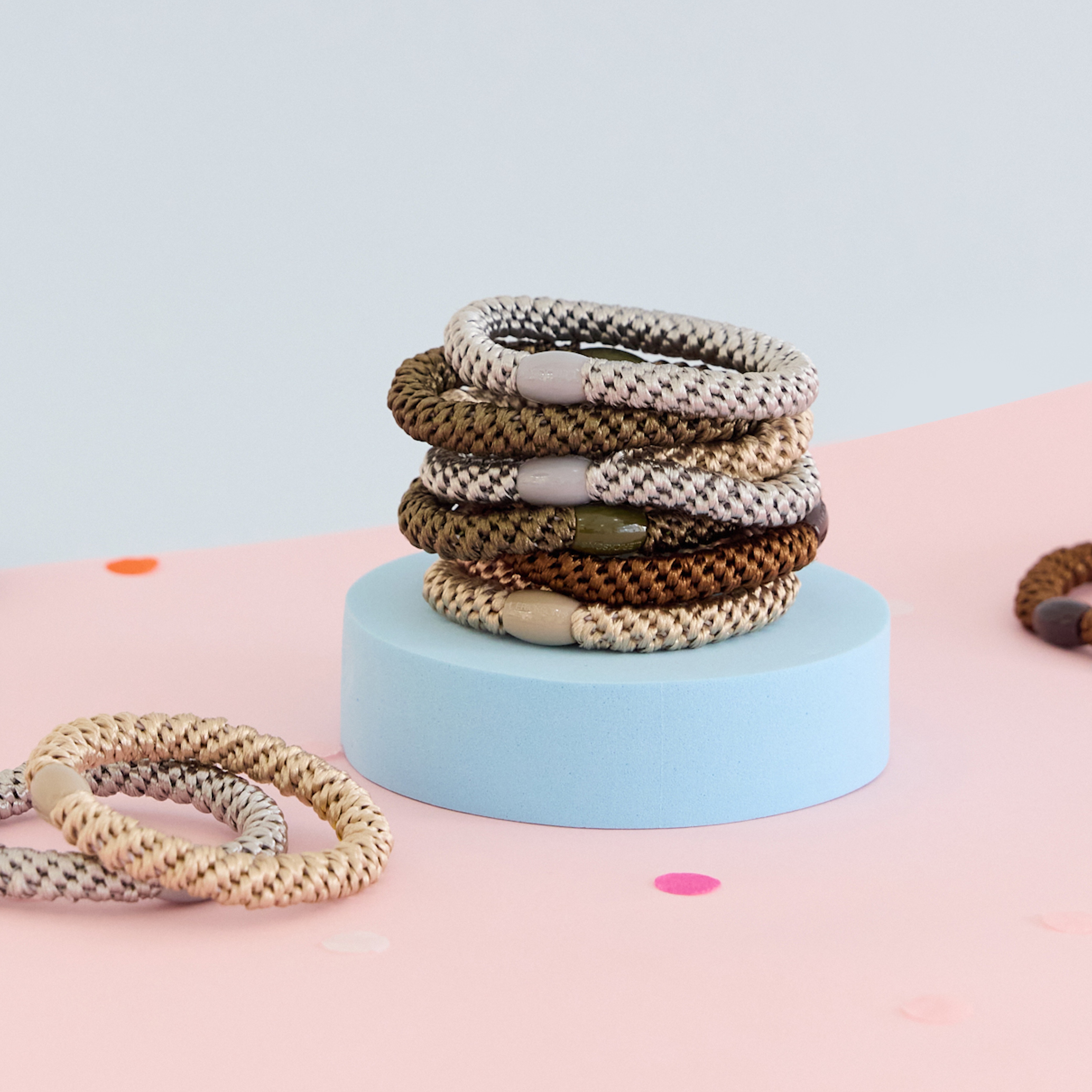 快速出貨⚡飲料續杯,髮圈就位【L. ERICKSON 官方旗艦】粗版 彈力髮圈桶 15入 〈經典派對〉- 不易鬆、不咬髮、彈性強
