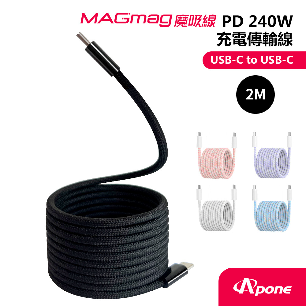 【Apone 崇鼎科技】MagMag 魔吸 USB-C to USB-C 充電傳輸線 - 1.2M [墨黑色/灰白色/櫻花粉/金香紫/薄荷藍]