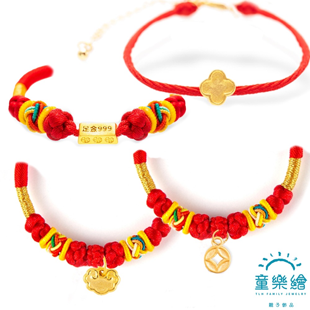 【TLH】編織手鍊黃金墜 純金999 多選 開運紅繩 約重0.03錢±0.01(生日禮 情人節)