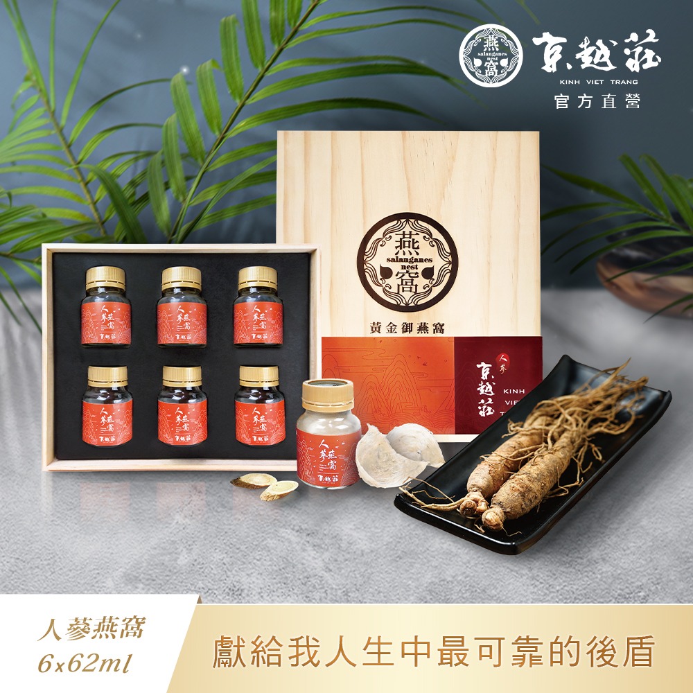 [快速出貨] 蔘蔘感謝有你【京越莊】頂級海島人蔘即飲燕窩禮盒 (62ml/瓶) 水瓶座生日快樂 食在好健康 熬夜加班 缺乏運動 營養補給 食在健康 送長輩 親友 能量補充 開罐即飲 送禮推薦