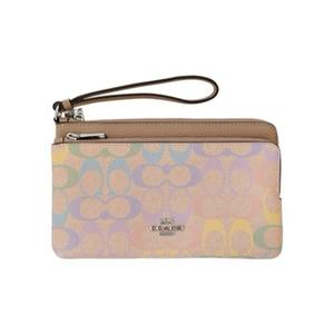 [平輸版] 【COACH】粉彩/卡其C LOGO PVC拼接皮革子母雙層大款手拿包 真品平輸