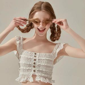 🆕新品上架【梨花娘】韓國VIKINI VENDER 精緻浪漫蕾絲鉤花荷葉短背心