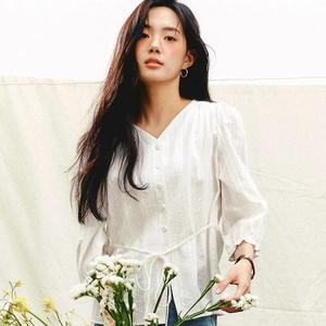 【梨花娘】韓國品牌 ROEM細節V領綁帶襯衫(2色)