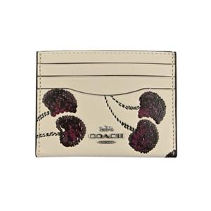 [平輸版] 【COACH】仿刺繡櫻桃皮雕亮粉燙印白堊色素面皮革雙面名片/票卡夾 真品平輸
