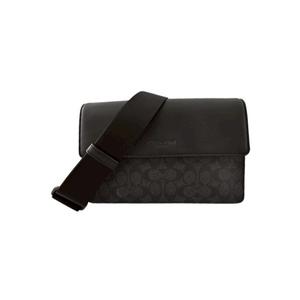 [平輸版] 【COACH】C LOGO PVC拼接素面皮革上翻蓋斜背男包/迷你郵差包 真品平輸