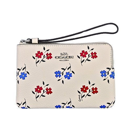 [平輸版] 【COACH】粉桃紅撞色格紋帆布L型拉鍊中款手拿包 真品平輸
