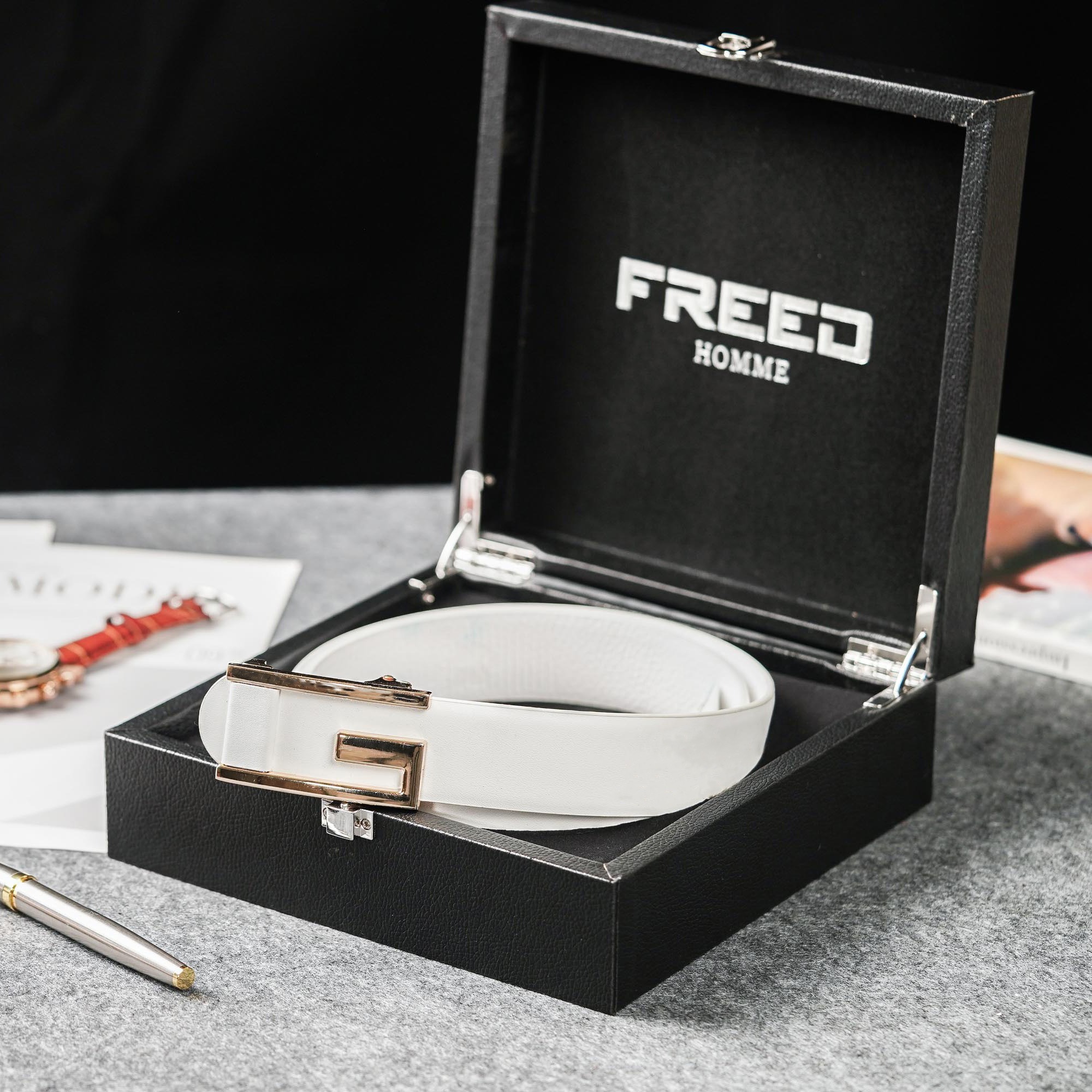 [快速出貨]【FREED】方形扣素面休閒真皮皮帶 - 黑銀 客製化刻字 生日禮物 送禮推薦 男生禮物 水瓶座 雙魚座 禮物獨家 新品上市 交換禮物 情人節禮物