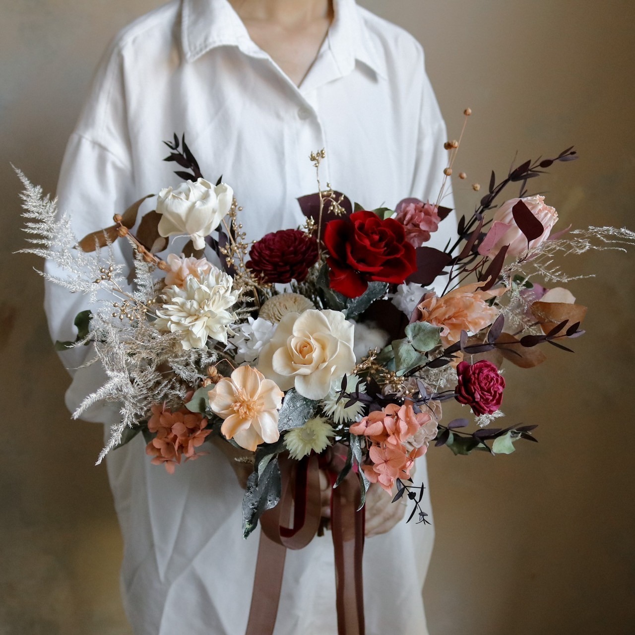 【遇見恆久】霧感藕粉永生玫瑰捧花 新娘捧花