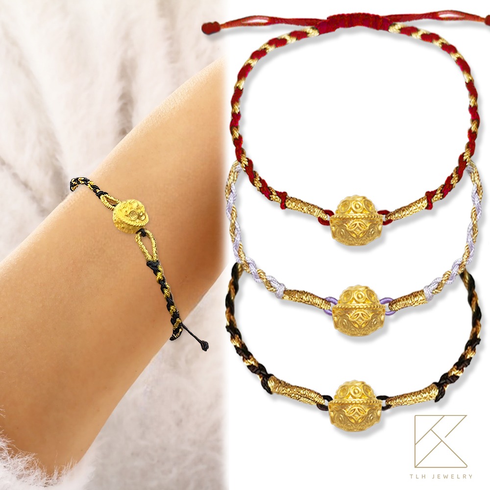 【TLH】黃金墜可調節編織手繩 純金999 財運馬上來 約重0.07錢±0.02 隨機贈送馬年御守 (馬年 過年 送禮)