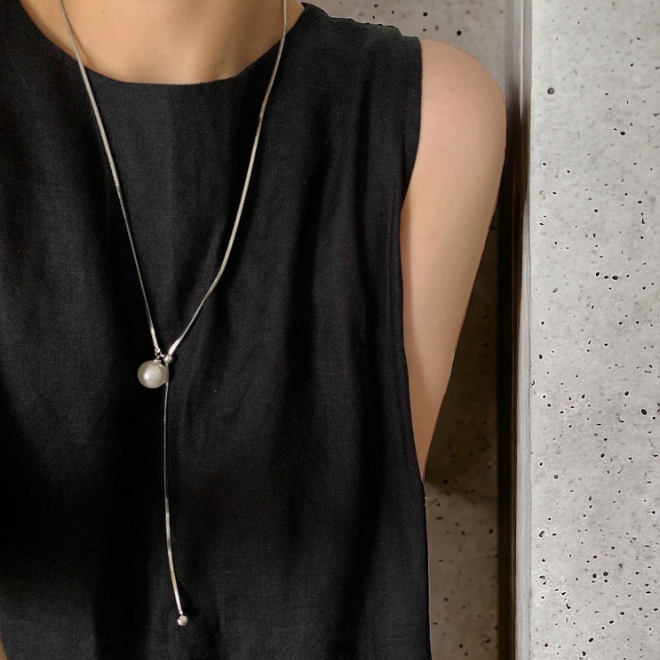 【Whomfor吳爾芙輕珠寶】萬葉集回憶|真多麻銀灰色強光珍珠短毛衣鍊 (男女皆適合)
