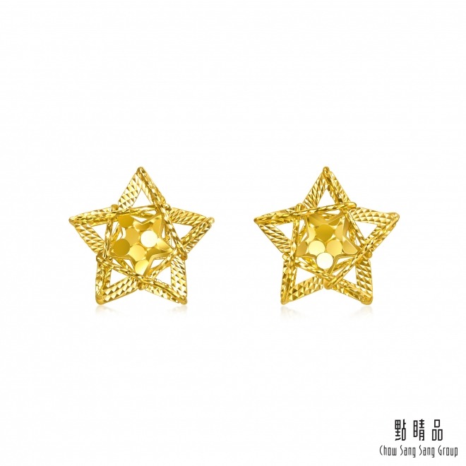 【金喜飛來】黃金耳環閃亮五瓣花一對(0.17錢±0.02) 【快速出貨】