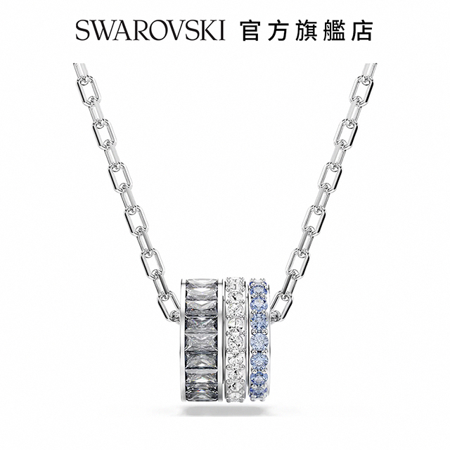 【SWAROVSKI 施華洛世奇】Matrix 鏈墜 方形切割 藍色 鍍白金色 | 生日禮物 | 畢業禮物 | 情人節禮物
