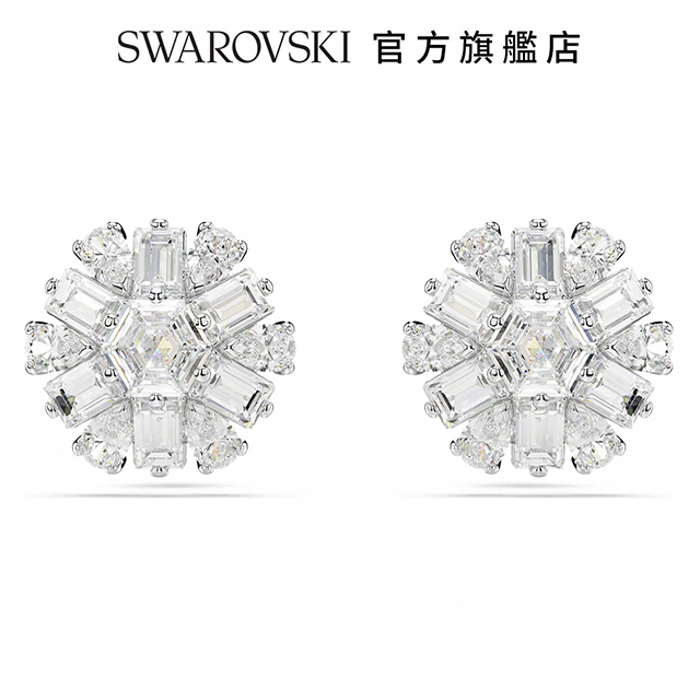 【SWAROVSKI 施華洛世奇】Una Angelic 耳釘 圓形切割 密鑲 白色 鍍白金色 | 生日禮物 | 畢業禮物 | 情人節禮物
