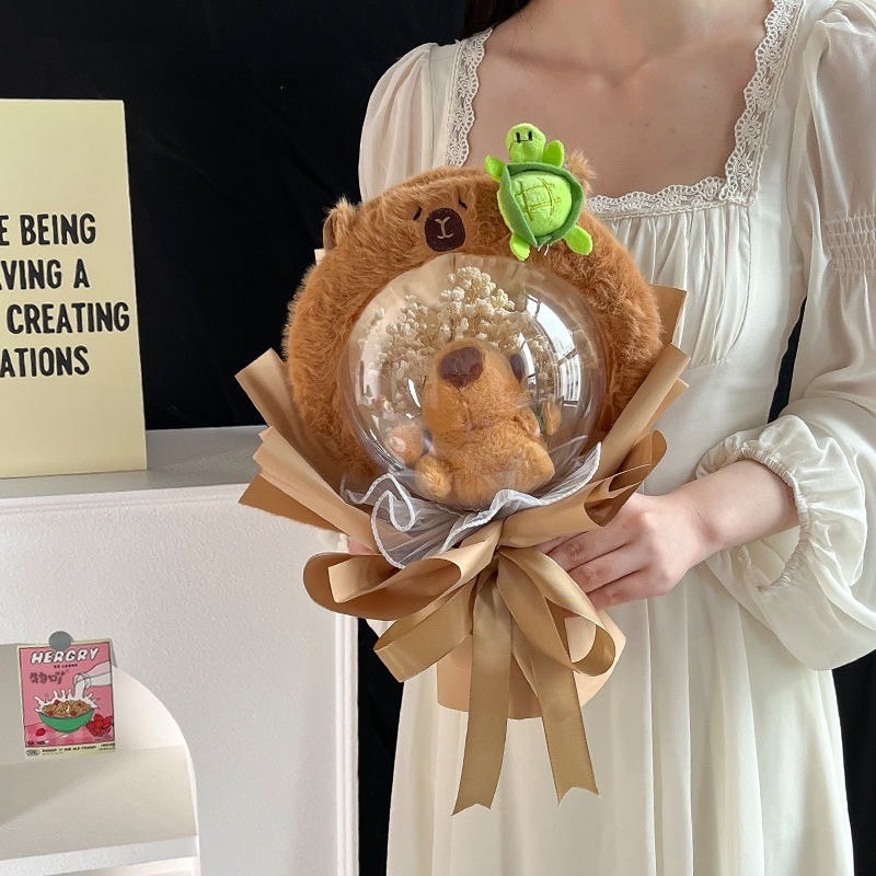 送法國進口精油🌟隨機加送韓國面膜【花花市集】卡通花束玩偶花束 永生花束 娃娃花束 卡通玩偶花束 - 大耳狗