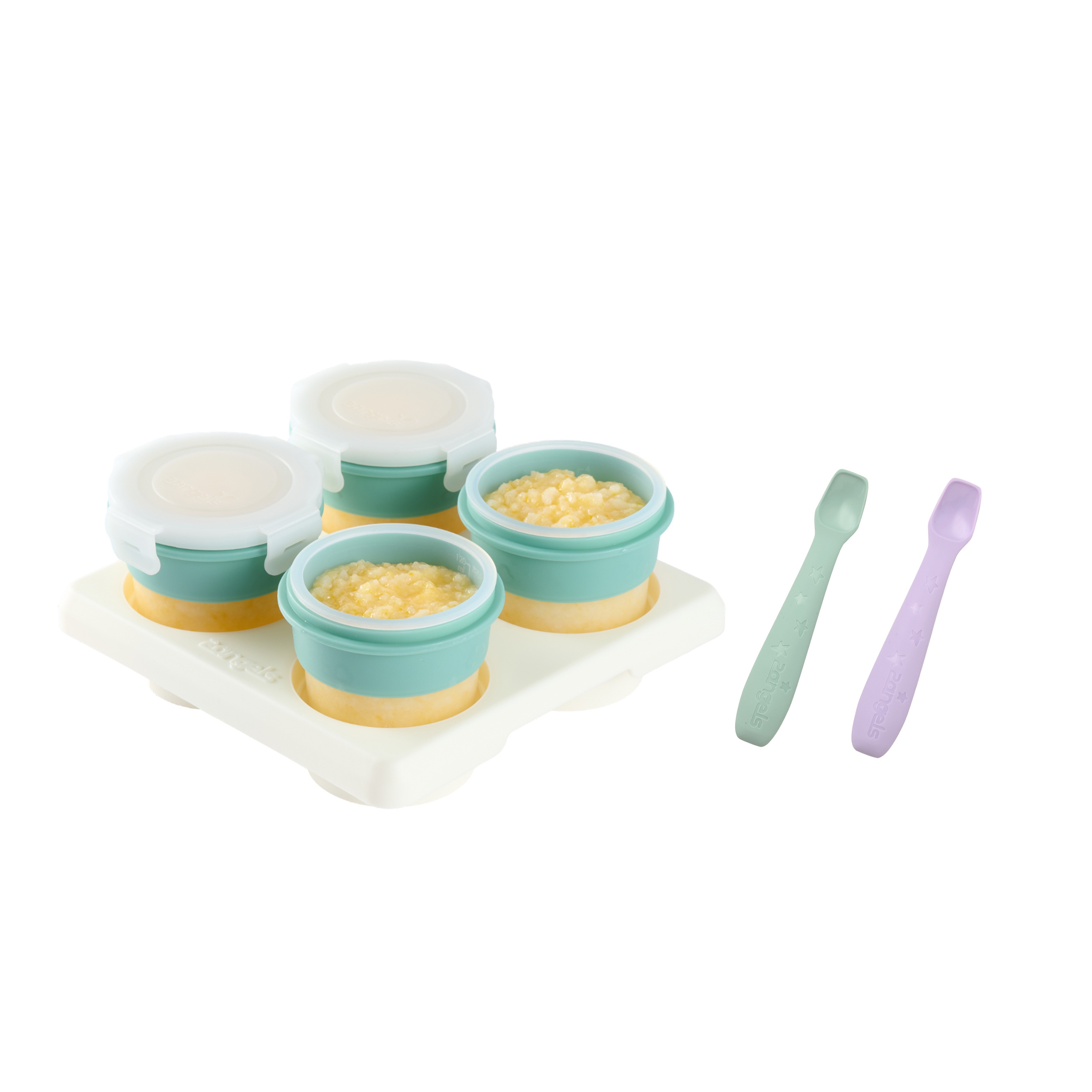 【2angels】矽膠餵食湯匙2入x2組(4支) - (夏葉綠&紫色兩色 附收納盒)