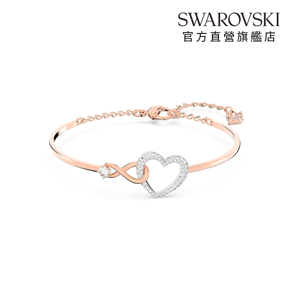 【SWAROVSKI 施華洛世奇】Infinity 手鏈 無限符號和心形 白色 鍍白金色 | 生日禮物 | 畢業禮物 | 情人節禮物