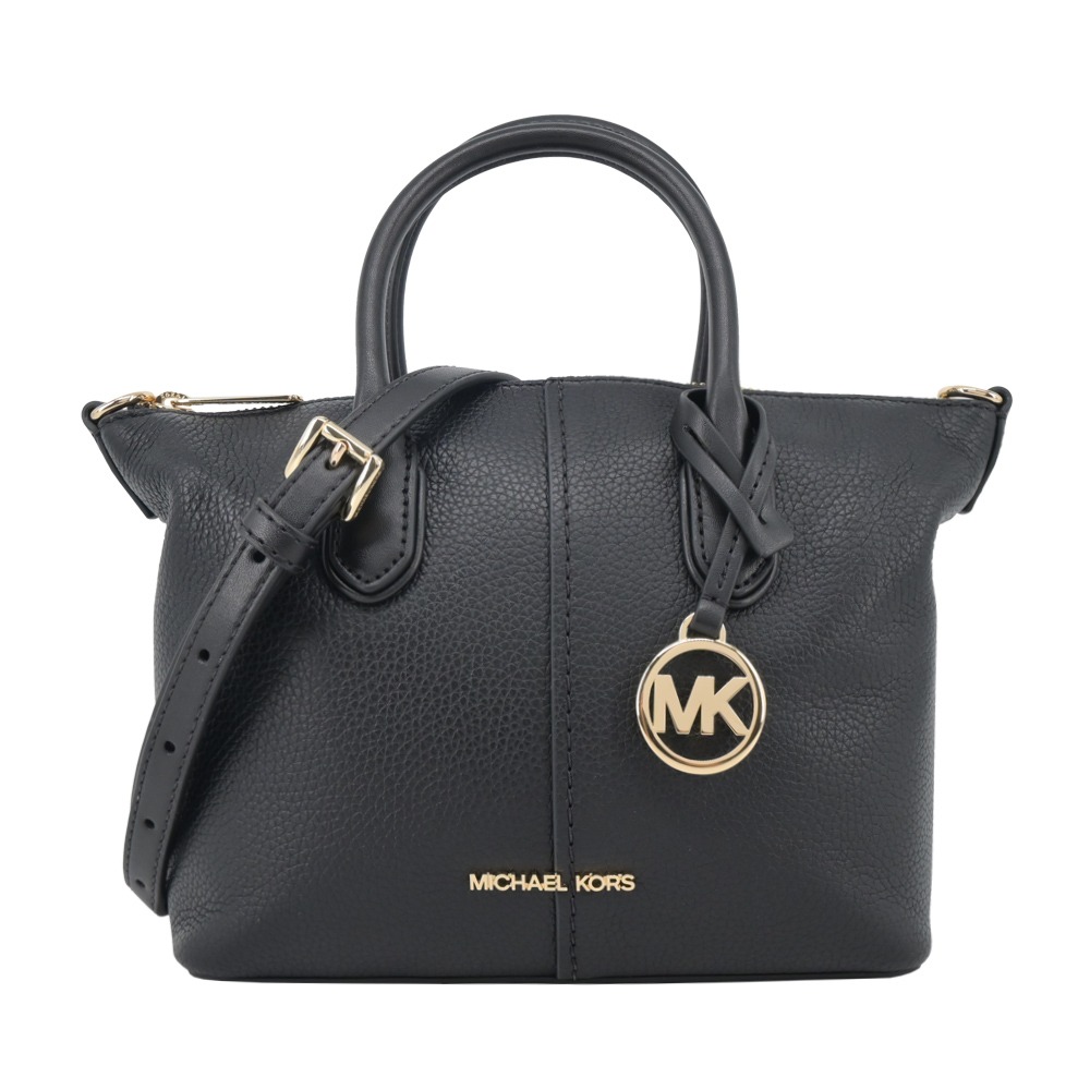 [平輸版] 【MICHAEL KORS】WILMA金字皮革掛鍊肩背包(中/黑)真品平輸