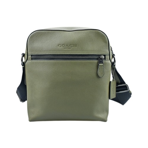 [平輸版] 【COACH】焦糖棕C LOGO麂皮後拉鍊袋中款水餃斜背男包 真品平輸
