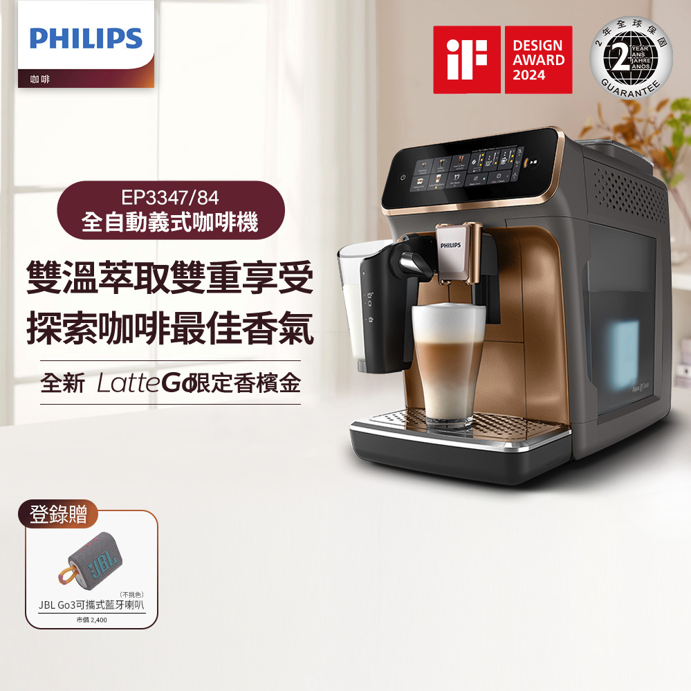 【PHILIPS飛利浦】LatteGo 雙溫萃取全自動義式咖啡機EP3347/64 (經典銀)