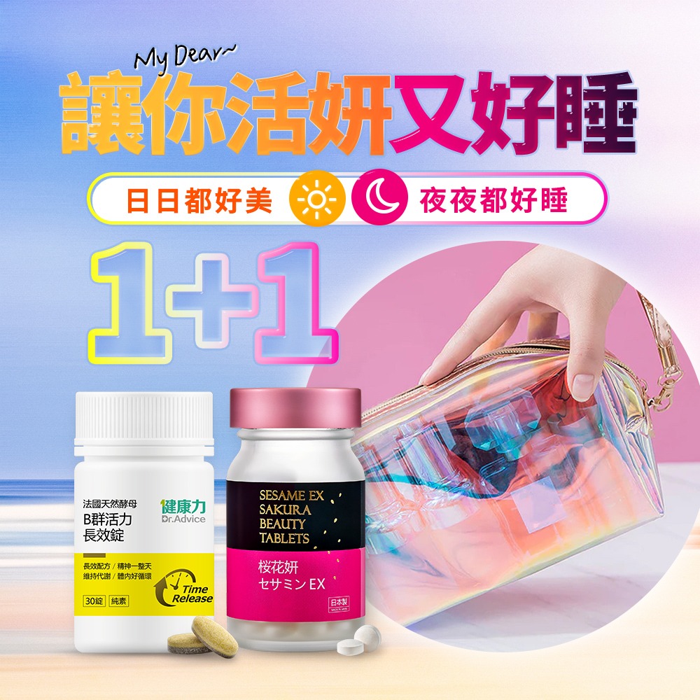 【健康力】芝麻櫻花錠(30錠/瓶)+法國天然酵母B群(30入/瓶)送咖啡條紋包🚚宅配到家