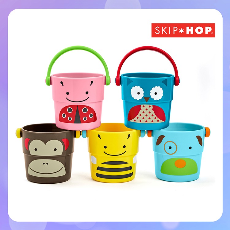 【SKIP HOP】ZOO小動物疊倒水桶 - 5件組洗澡玩具 (活力組)