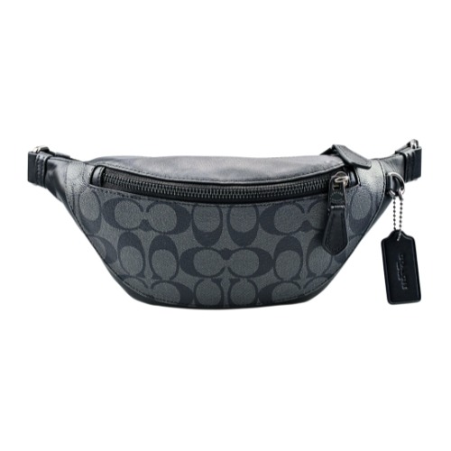 [平輸版] 【COACH】黑灰C LOGO PVC前扣袋斜背男包(小) 真品平輸