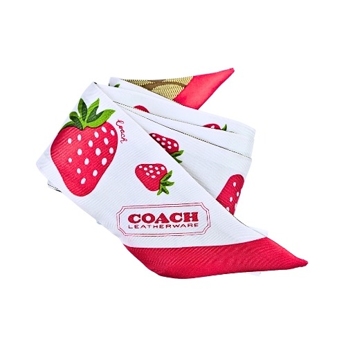 [平輸版] 【COACH】仿刺繡櫻桃皮雕亮粉燙印白堊色皮革鍊帶頸掛斜背方型卡夾零錢小廢包 真品平輸