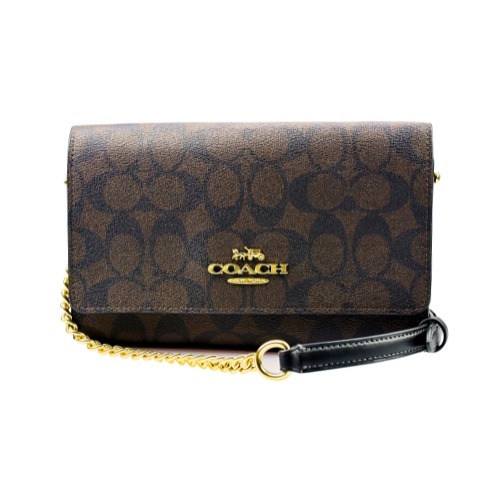 [平輸版] 【COACH】 JOSIE黑色防刮皮方翻蓋橫式迷你斜背包 真品平輸