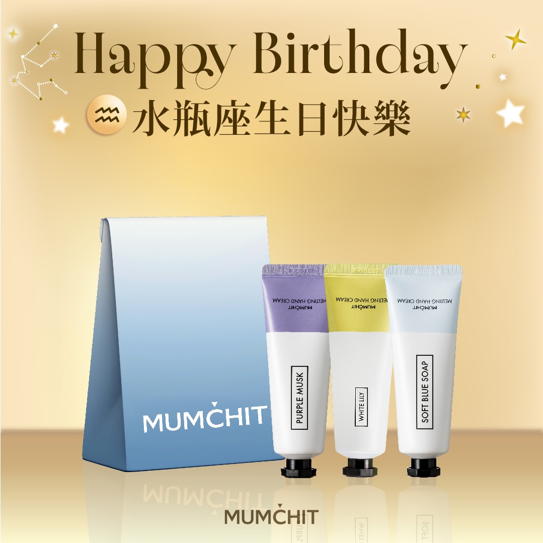 快速出貨【MUMĆHIT】水瓶座生日快樂!療癒香氛護手霜+香氛身體乳液+霧銀禮袋『LINE 禮物獨家』(生日禮物)(水瓶座禮物)(送禮推薦)