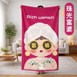 🧨新年快樂🧡快速出貨【COZY PLUS+】GET RICH富婆招財法蘭絨毯JAN07 #CP0293 招財 午睡毯 披肩毯 沙發蓋毯 禮物 生日禮物 聖誕節禮物 交換禮