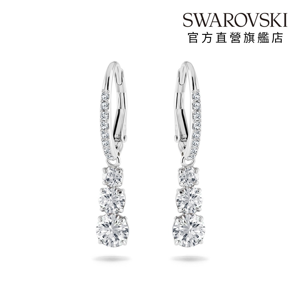 【SWAROVSKI 施華洛世奇】Una Angelic 水滴形耳環 圓形切割 白色 鍍白金色 | 生日禮物 | 畢業禮物 | 情人節禮物