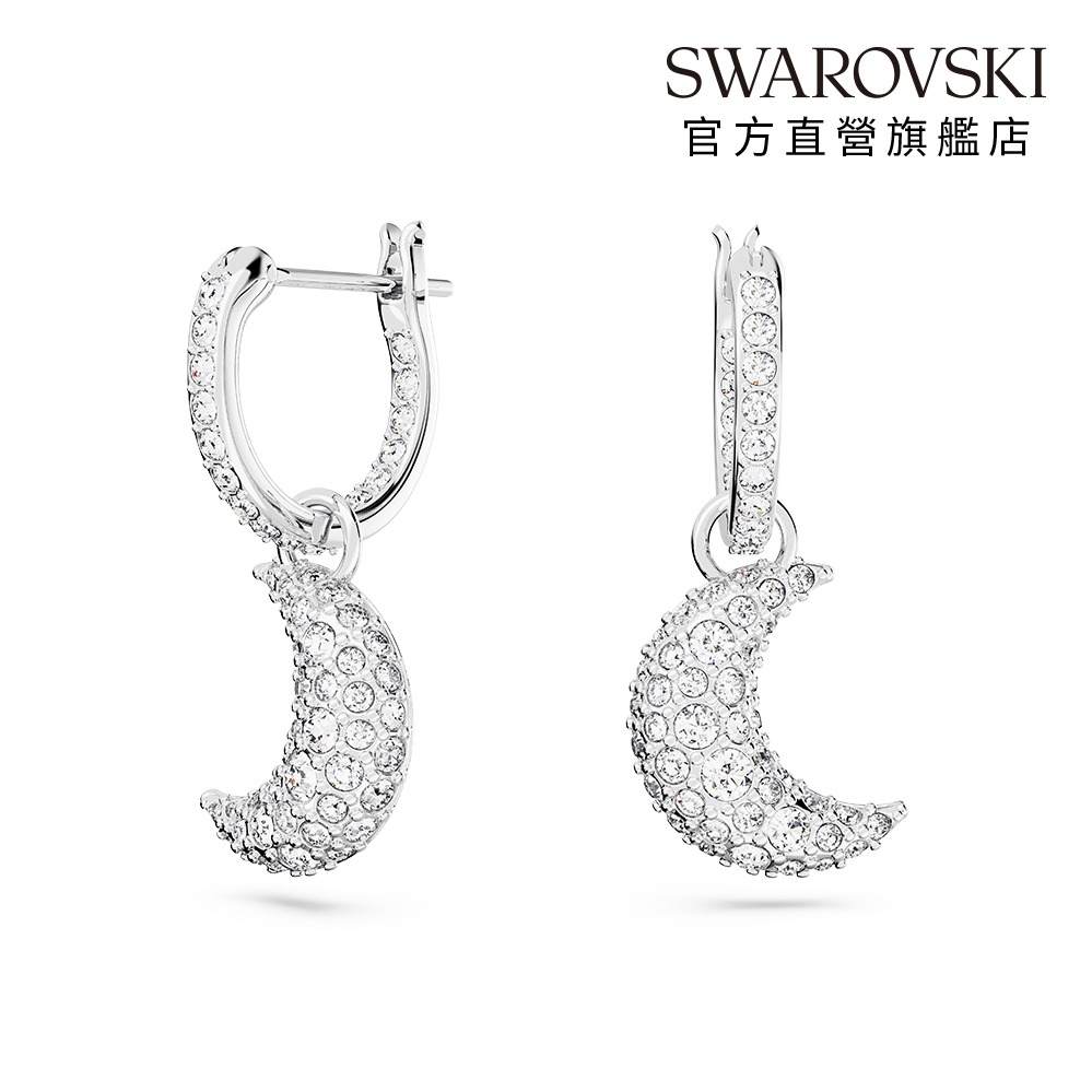 【SWAROVSKI 施華洛世奇】Una Angelic 水滴形耳環 圓形切割 白色 鍍白金色 | 生日禮物 | 畢業禮物 | 情人節禮物