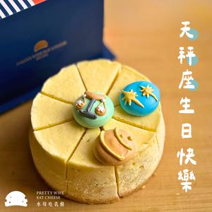 天秤座生日快樂 象徵公平公正兩端平衡的秤子〖水母吃乳酪〗綜合乳酪蛋糕 (8切) 附贈生日帽/蠟燭 全館贈專屬提袋