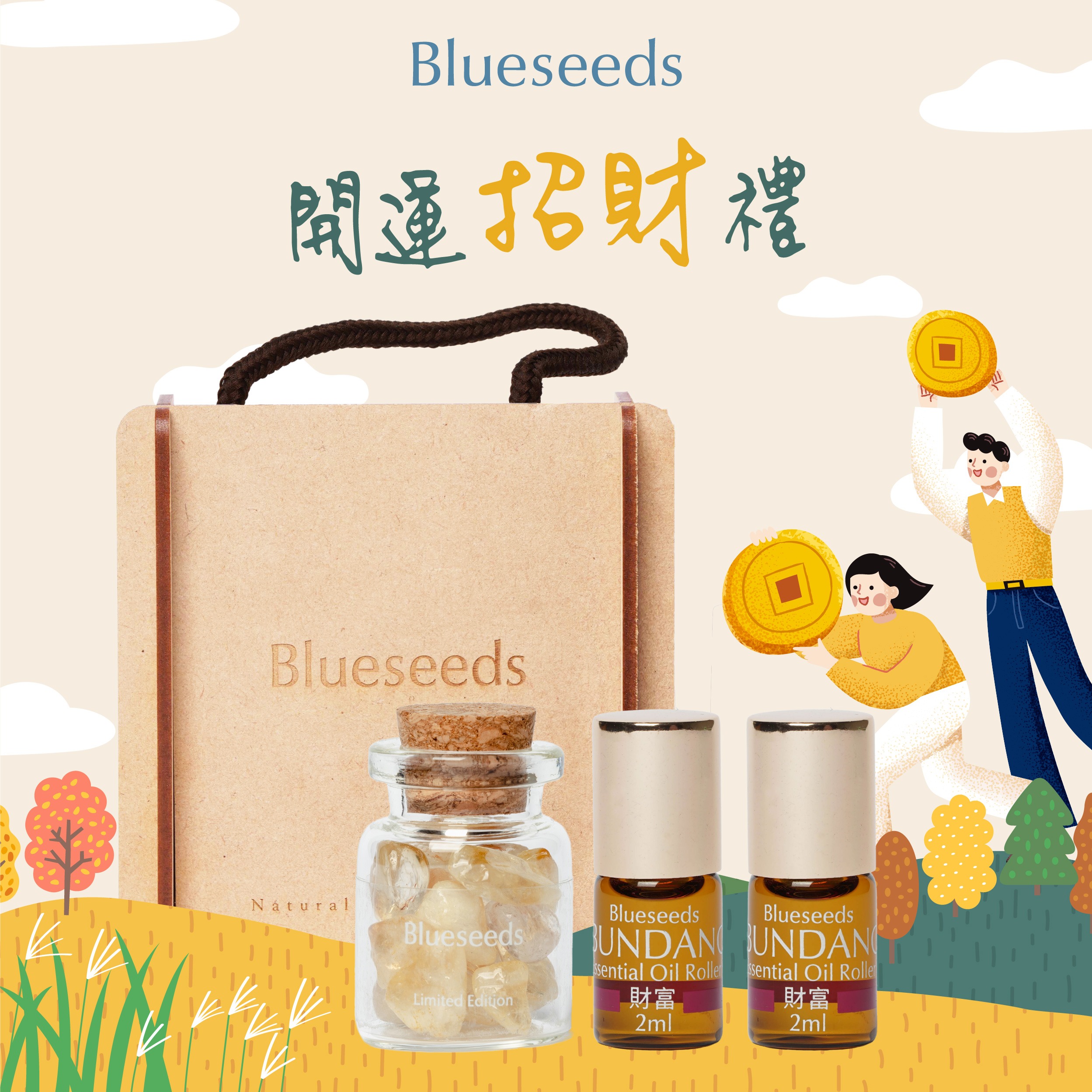 【Blueseeds】青春記憶 友情長存 l 禮物獨家贈禮盒+束口袋【收禮者可自選單方滾珠精油2ml+精油噴霧30ml】l 芙彤園