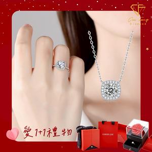 [快速出貨]【CF鑽飾】214情人節限定《捧💐款 項鍊+戒指》莫桑鑽 1+1套組 情人節 贈玫瑰花禮盒 生日禮物 送禮