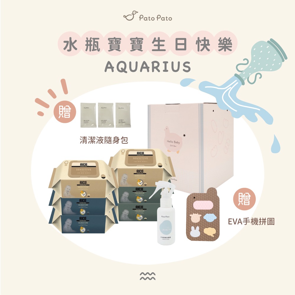 【Pato Pato】x 韓國 Rico Baby 新生兒濕紙巾禮盒組12件組 /新生賀禮 /彌月禮/新生禮/滿月禮/生日禮物/媽媽禮/寶寶禮