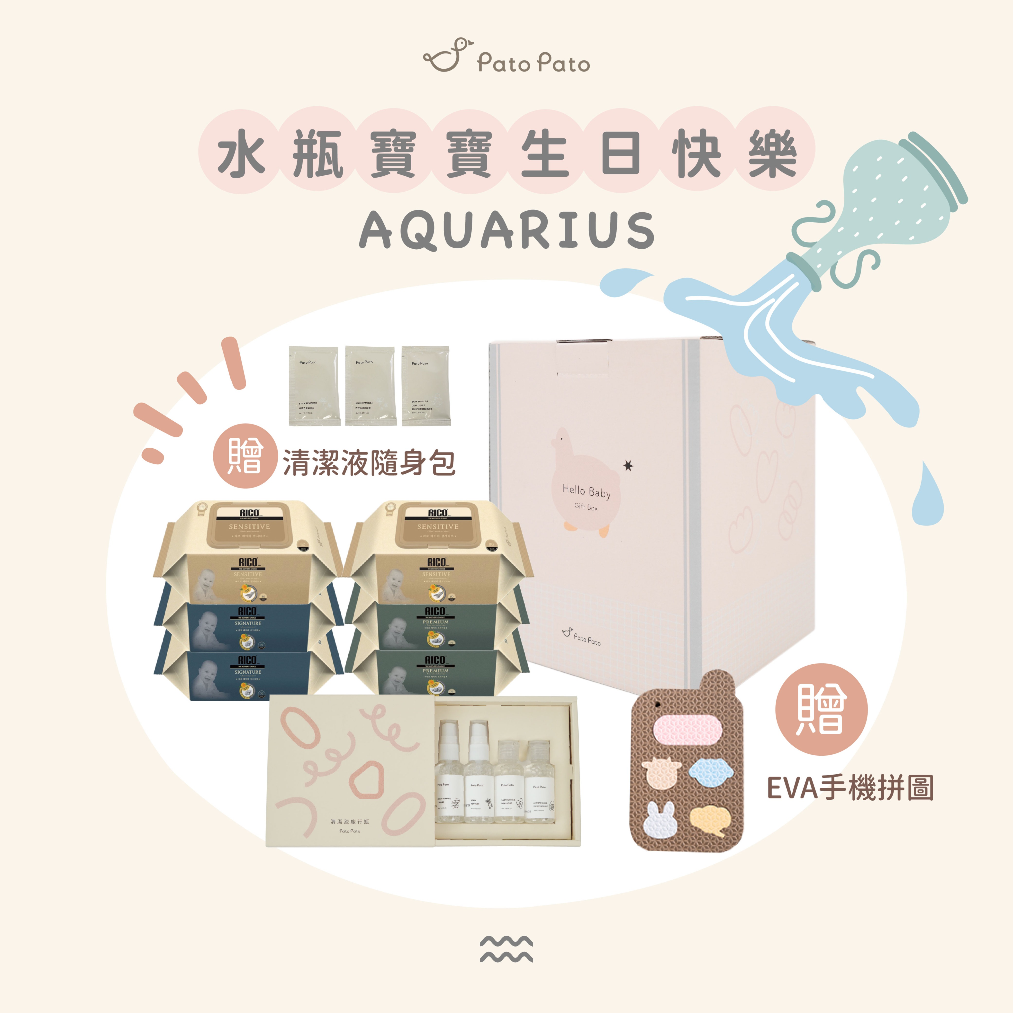 水瓶座寶寶!生日快樂~【Pato Pato】x 韓國 Rico Baby 新生兒外出抗菌禮盒組 /新生賀禮 /彌月禮/新生禮/滿月禮/生日禮物/媽媽禮/寶寶禮