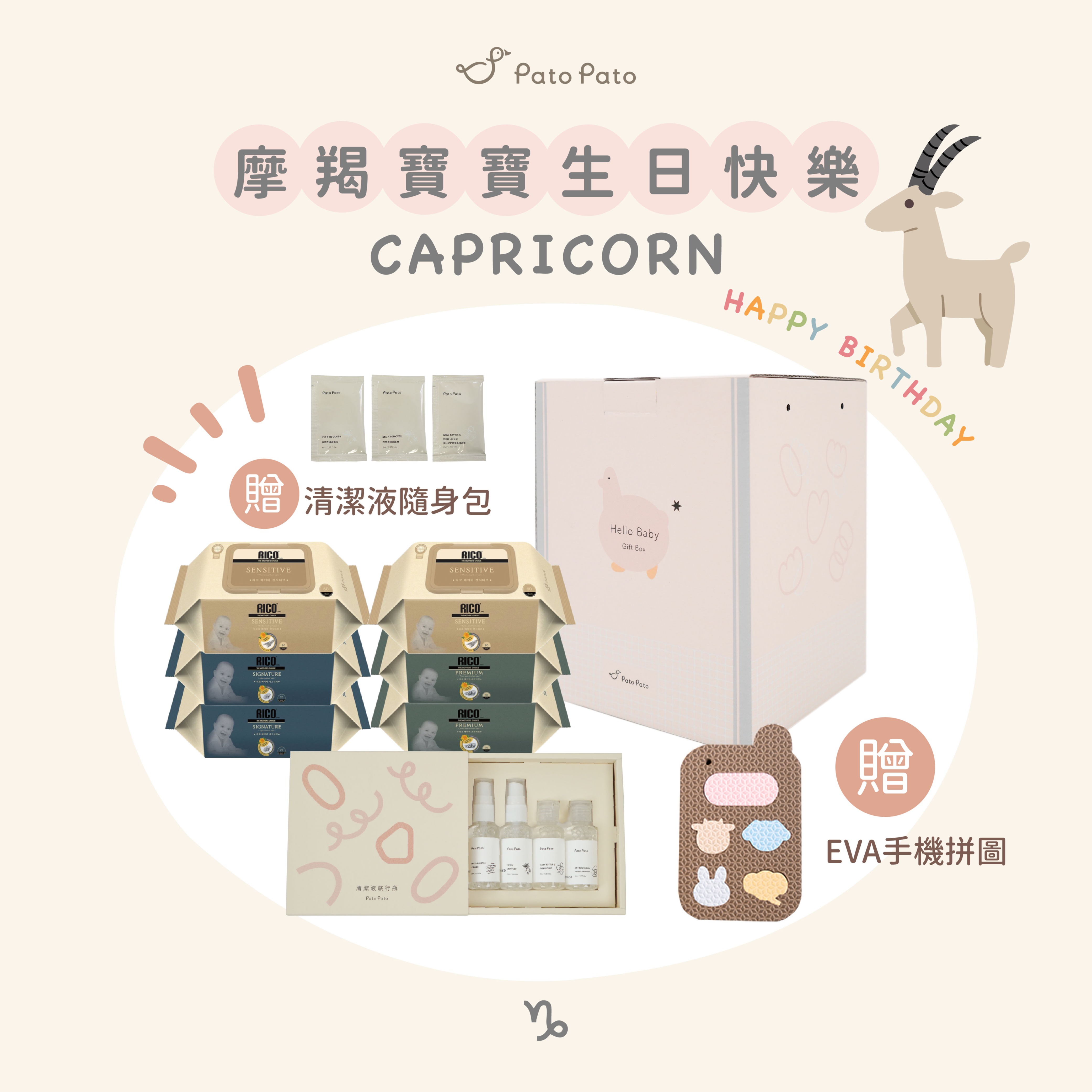 【Pato Pato】X 韓國 Rico Baby新生兒外出用品禮盒組(濕紙巾+抗菌液) /新生賀禮 /彌月禮/新生禮/滿月禮/生日禮物/媽媽禮/寶寶禮