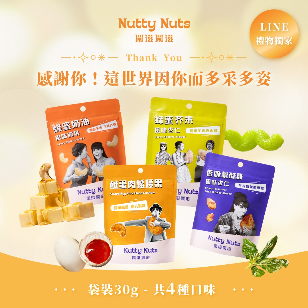 其他說明事項: 客服聯絡管道 ・客服信箱:service@nuttynuts.com.tw ・客服電話:04-25355777 .官方LINE帳號:@nuttynuts ・客服時段:週一到週五 8:30-17:00
