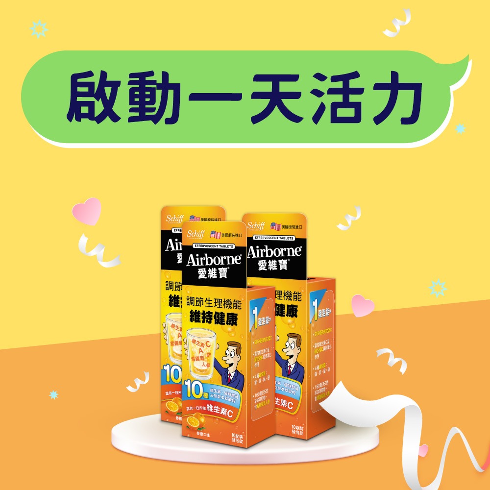 [水瓶座生日快樂]【Move Free 益節】Airborne 發泡錠香橙口味 10錠 - 三入組