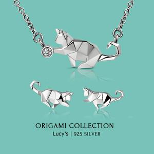 【Lucy's】純銀摺紙系列|頑皮貓 耳環/項鍊 (117044/117045)
