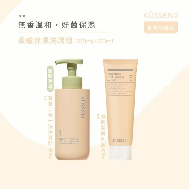 【KÜSSEN 葵森】寶寶二合一洗浴慕斯 350ml + 益菌潤膚乳液 120ml + 寶寶益菌屁屁膏 50ml|獨家禮盒/送禮首選/換季保養/易敏肌保養/新手爸媽禮