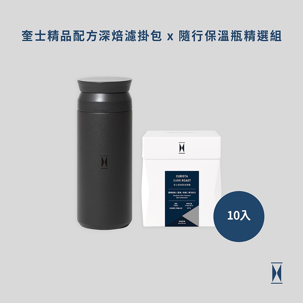 期間限定1+1【 奎士咖啡】奎士嚴選配方中焙濾掛咖啡10入 x KINTO聯名隨行保溫瓶500ML((消光黑) 精選組