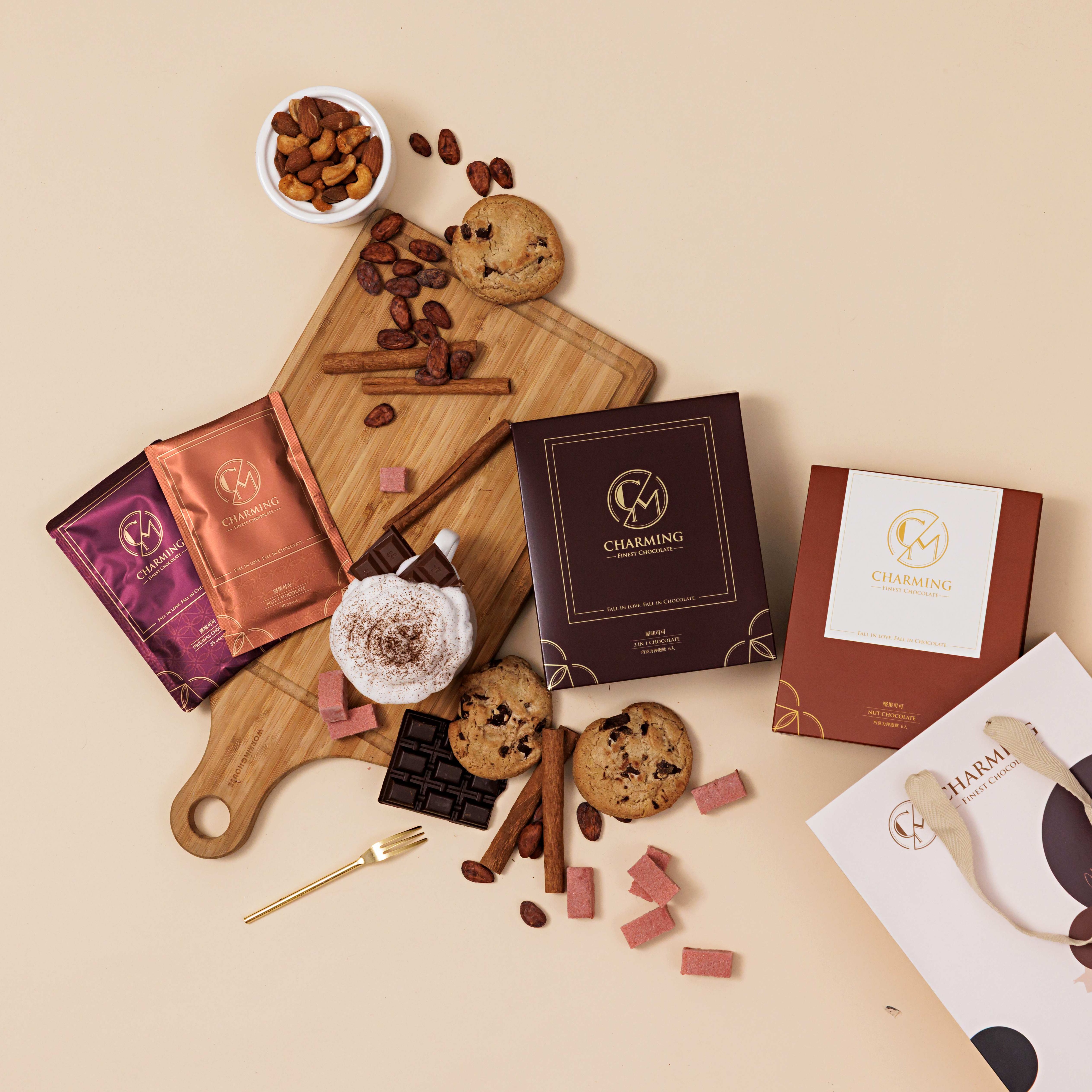 送出溫暖,也送出質感💝 Charming 喬名巧克力『原味+堅果可可』組合8入禮盒(附紙袋)快速出貨