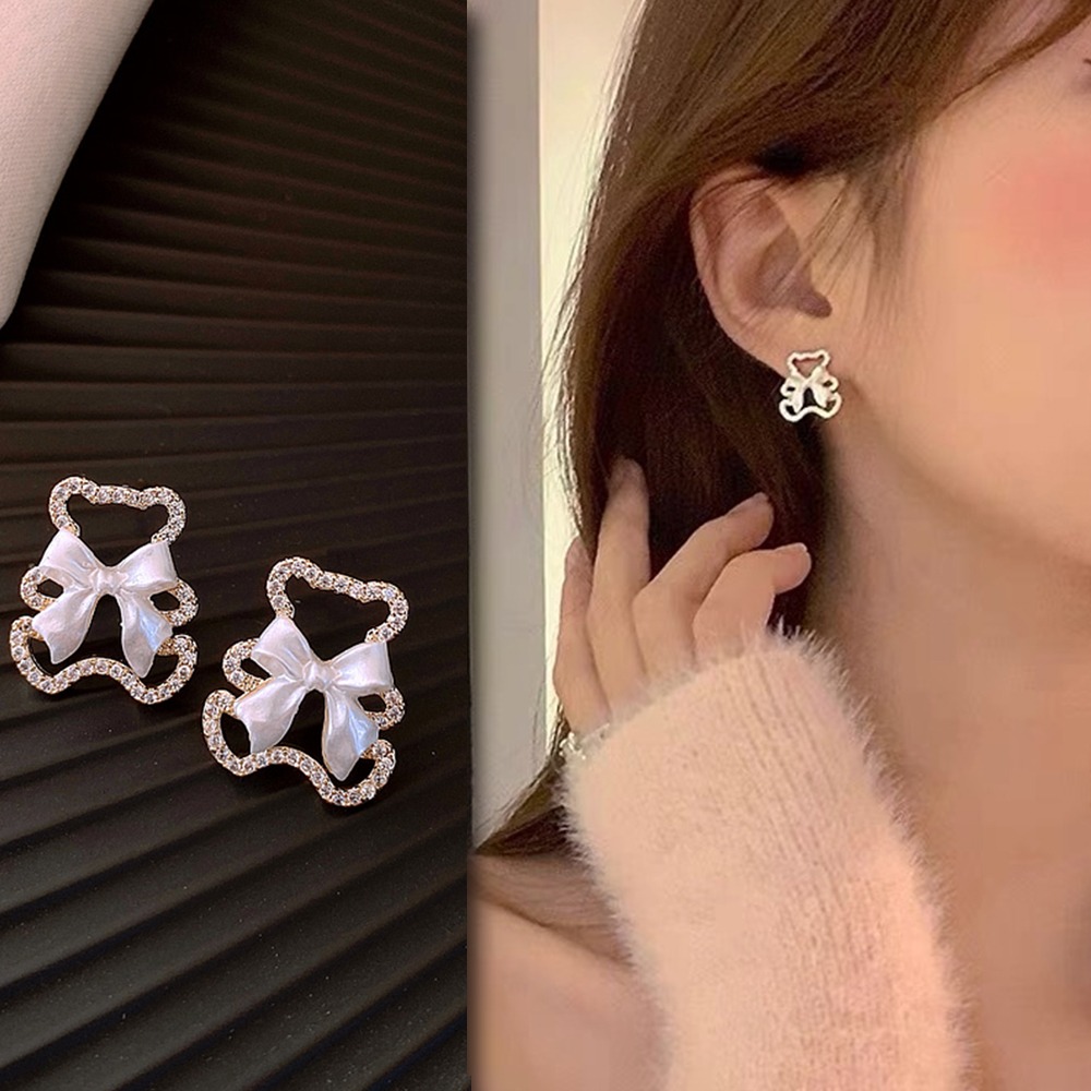 【Gulicc】滿鑽蝴蝶結 花朵耳環