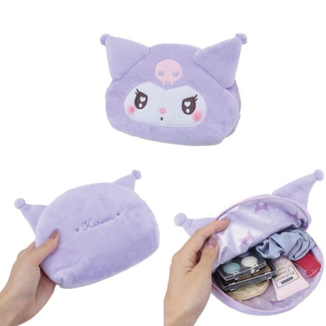 【小禮堂】酷洛米 絨毛大臉化妝包 (水汪汪)
