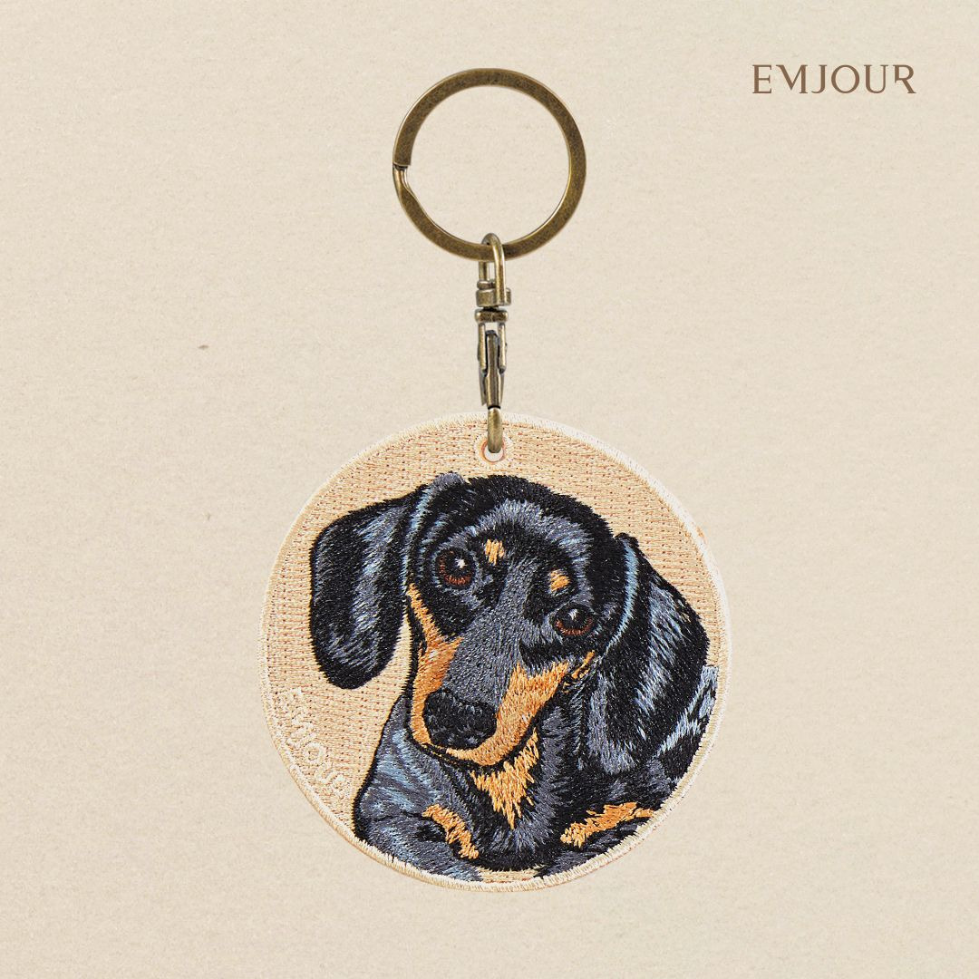 【EMJOUR】雙面刺繡吊飾 - 棕毛臘腸