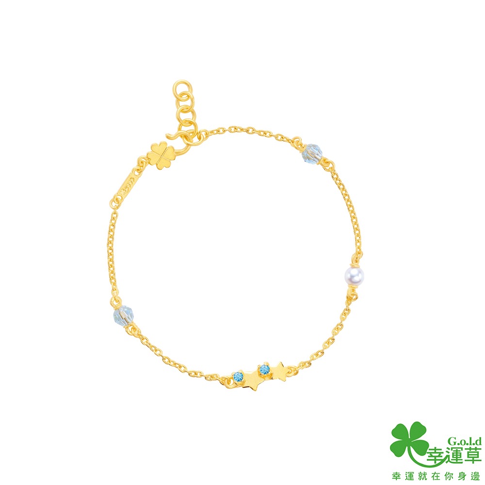 【幸運草金飾】金黃脆可頌黃金/水晶手鍊