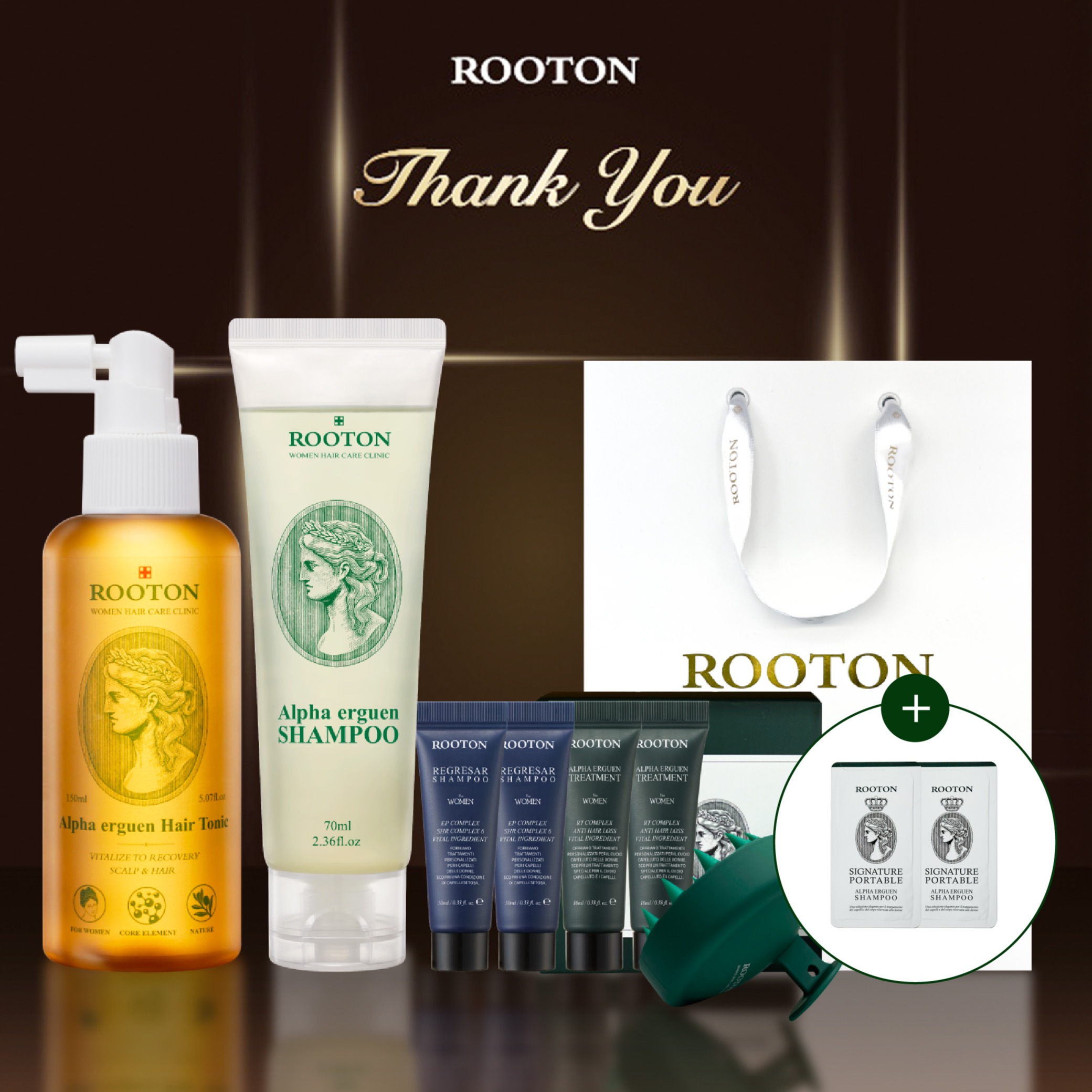 快速出貨【ROOTON】生日快樂!甦活植萃髮根噴霧150ml+甦活植萃洗髮精5ml+甦活植萃護髮素5ml+頭皮按摩梳+海藻洗髮精10ml x2+護髮素10ml x2+品牌質感提袋(水瓶座生日禮物)