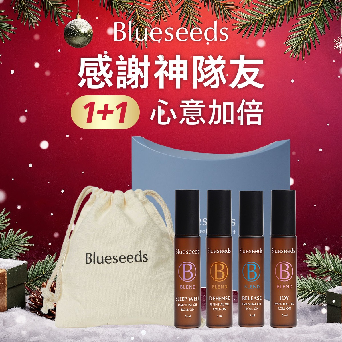 【Blueseeds】【強運1+1分享禮】#強運滾滾來 l 禮物獨家附禮盒+束口袋 l 輕芳療隨身複方滾珠精油棒 5ml ( 防禦|舒眠|愉悅|舒緩 )